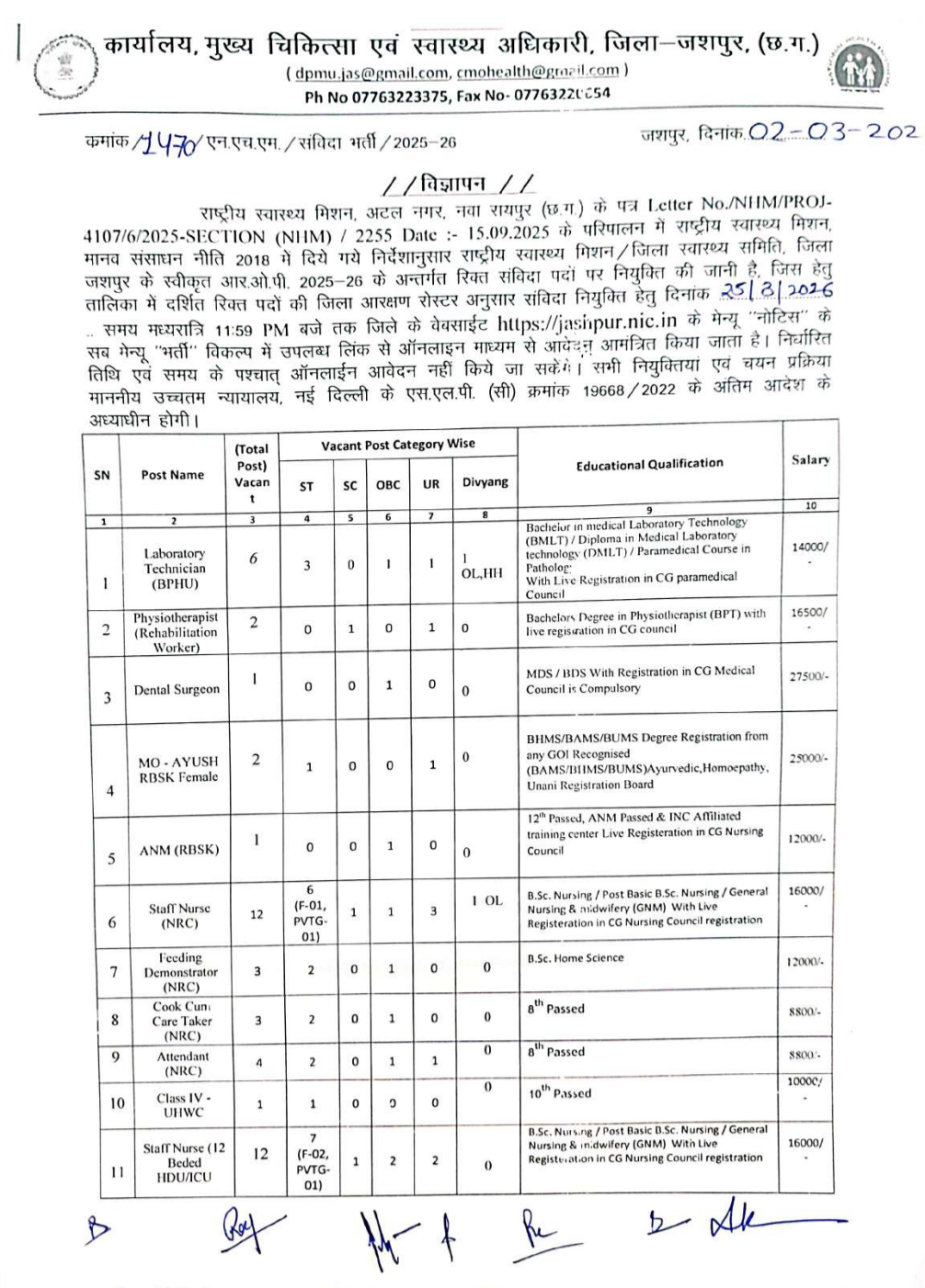 🏥CMHO Jashpur Vacancy 2026 Vacancy Details